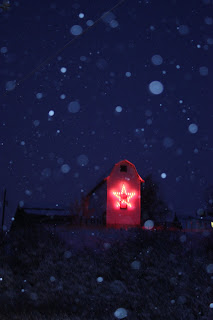 Last night was magical.  It snowed about a foot at our house yesterday, and it took a long time for the snowplow to come around.  At our house it is pretty peaceful anyway, but on a cold snowy night we are the only humans in existence I think.  James and I had to run into the bakery and I took a few pictures  of the paradise Christmas scenes.  When the star on the old barn in Paradise comes on you know that the Christmas season is here.  It is a favorite landmark.  They have a star on the North and the South side of the barn.  Everyone in Avon, and Paradise can see it.  I love it.  Also the kids are loving the snow.  Seth could live out there.  First thing he does is get his snow clothes on, and he is the last one back in the house.  It is quite nice that everyone can get their own clothes on.  I only have to zip a few zippers, and fix some goggles.  I think I’ve heard it said, “It’s the most wonderful time of the year!”  (you know the tune, I hope you sang along 🙂  )