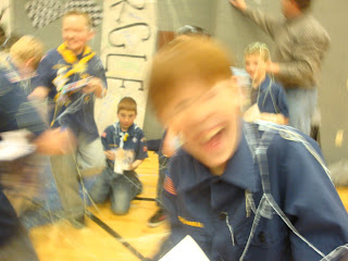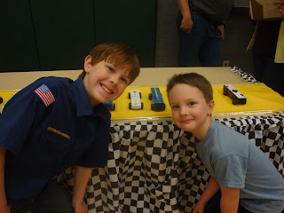 I am always so happy when Jan. is over. There is nothing wrong with Jan. in particular. It is just long, cold, colder, and bleak. I will say though, that we have had some amazingly beautiful crisp clear days. It may only be -4′ F outside, but it looks beautiful. Thankfully it is over. And along with Jan., the Pinewood Derby is over. I have yet to have any winners at the Pinewood Derby. We have participated in four of them now, and four times there have been tears. This year it was my tears not Jakes. It was last Weds. night and James was late getting home. He was late for his church meetings too so he rushed out the door with a big, “Good Luck! HEHE.” and I was the one in charge of getting the car perfect. I hate showing up at the church on Derby night and all the dads have pockets full of weights, a tube of graphite, and the most competative nature about them. Poor Jake was the only kid who’s mother had to help him. What a disgrace. A few of the dads took pity on me and helped out though. I am now an expert at sanding the axels, graphiting the wheels and tapping them just the right way, and glueing just the right amount of weight on a Derby car. We didn’t win, but we at least had a lot of fun with the silly string at the end. Notice the graphite all over Jake’s nose. So handsome. I had a lot of graphite all over me too! James thought I was hot!