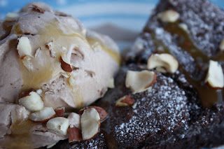 The gelato recipe came from Giada De Larentis (AKA TittyLou! You know exactly what I mean. You almost need to cover your husbands eyes when you watch her, but she makes the best dang stuff) Gelato is just a fancy Italian name for ice cream. Seriously though this recipe was a winner. Marc and Sus- get your ice cream maker out. This is the one for you. Here is the recipe for the gelato, and that is followed by a recipe for the torte. We just drizzled everything with caramel sauce and chopped hazelnuts. I think it looks good enough to eat :). Hey and if you are interested in becoming a Daring Baker too it is dang fun. The web site is www.thedaringbakers.com. There are links in the discussions on how to enroll in the super secret society or just email me. Happy cooking loved ones!!