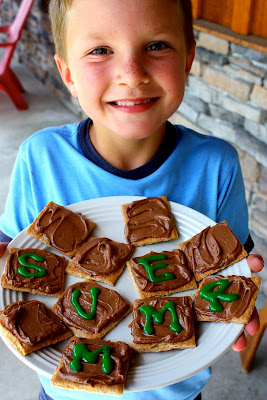 The grahm crackers are even better with peanut butter chocolate frosting. Or as Eric likes them: Grahms with peanutbutter, hersey chocolate bar and mini marshmellows melted under the broiler. Dang good.