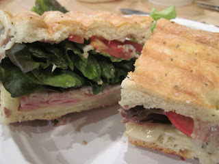 Last week one of our cute employees brought in a bag of some Focaccia she had made at home the night before for dinner. It was so tasty!! I had to replicate it. Had to! Sunday dinners at our home are usually something big and roast-ish, but with Christmas this weekend I figured we’d be eating a lot of meat and potatoes so I made two loaves of Focaccia and turned them into Panini sandwiches. It was lovely. It was easy too. Focaccia is a great alternative to breadsticks or garlic bread. It’s great for sandwiches too. I’m now trying to talk James into making it at the bakery. I feel a new sandwich in the making!!