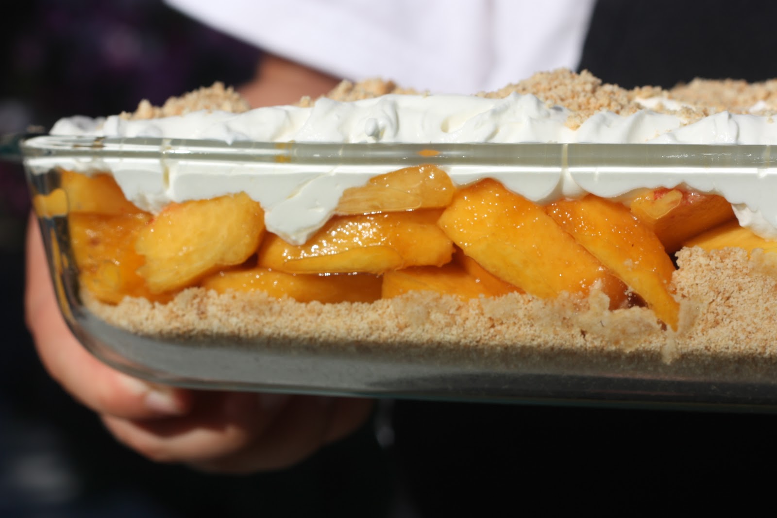 Once again my muther’s peach trees delighted us this year. The peach raper has been shot, (hallelujah!) and the peaches are beautiful! We have been eating peaches like we won’t see them again for another year:) To bad that is actually the case. We’ve had them on waffles, pancakes, with skim milk and cream, in smoothies and straight up in lunch boxes. The recipe that has dominated my kitchen this peach season has been this Peaches and Cream recipe below. I think I’ve made it at least 6 times. There’s only one bad part about this dessert. It is the leftovers.