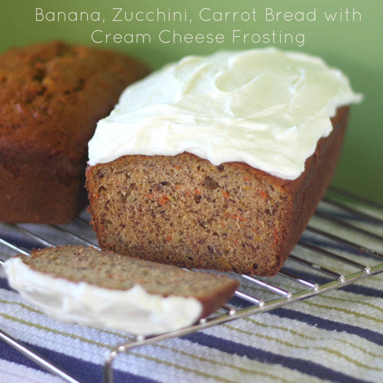 That is the question? So dang it…………what to do? And those of you who know me well will see that I frosted. My family’s new favorite bread recipe is being shared today, and as you can see I did frost. I figured since the batter was placed in loaf pans, then it technically isn’t a cake and therefore frosting isn’t THAT indulgent. It just added a little bit of pizazz to a lovely loaf of bread. (And if you remember correctly, the fact that vegetables are included in the recipe makes it completely healthy.)