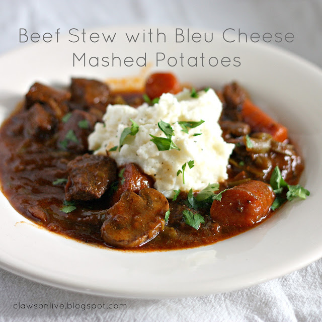 Now don’t feel like you have to make fancy mashed potatoes. You can use instant mashed potatoes if necessary. Or you can put potato chunks in the stew itself. Whatever you need, or have the time for. The Bleu Cheese Massed Potatoes are a staple at my house. We love Bleu Cheese. I always have a giant tub in my fridge so it’s an easy addition. You don’t have to make a special purchase. You can just have naked mashed potatoes, or add Parmesan, Cheddar, or Ranch Dressing. All of the above will make a great mashed potato. Enjoy!!